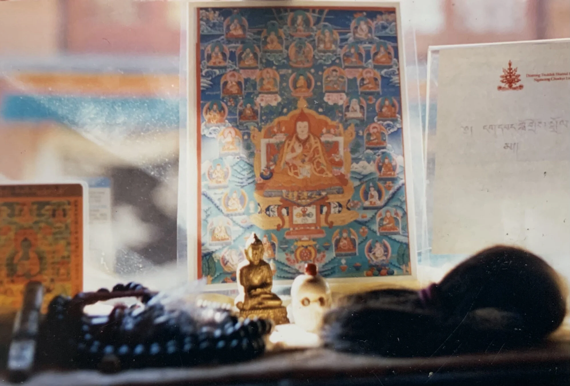 Mala and my shorn ponytail, Thubten Choling Monastery, 1994 (Photo by N. L. Drolma)