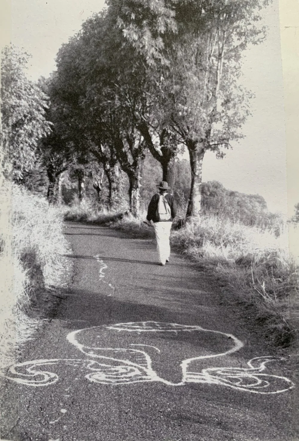 Auspicious sign of the conch on road entering Lerab Ling, 1992 (Photo by N. L. Drolma)