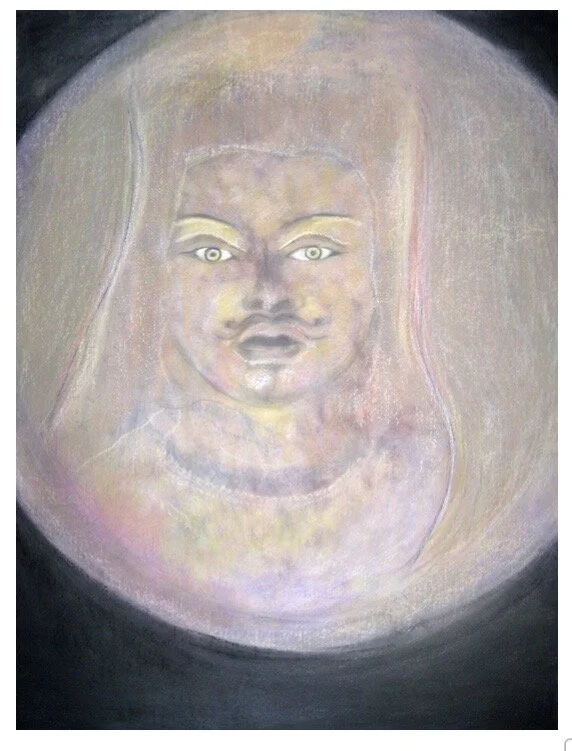 Guru Rinpoche. Drawing by N. L. Drolma (conté crayon, watercolor, pastel, 24”x 30”)